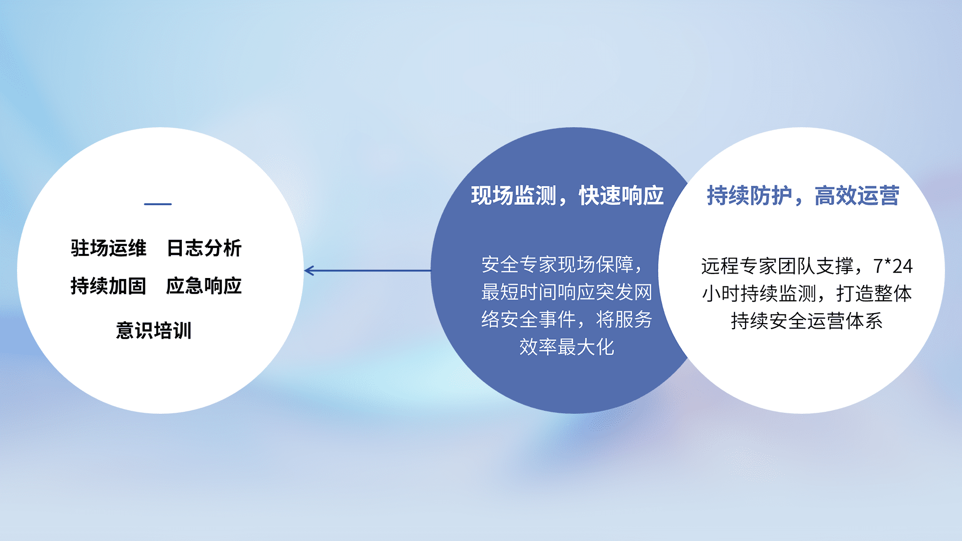 针对客户行业特性,,,,提供专属的一站式安全管理服务,,,帮助客户全面感知网络空间威胁,,通过安全专家的线上、、、线下防护支持,,实现风险闭环,,,将安全保障常态化,,,,为客户打造常态化安全运维运营服务。。。